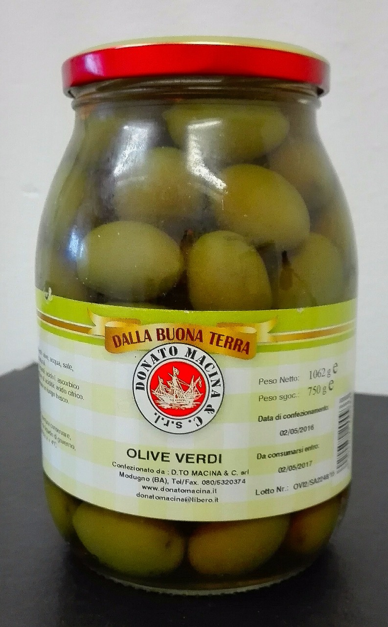Velké zelené olivy s peckou ve slaném nálevu.